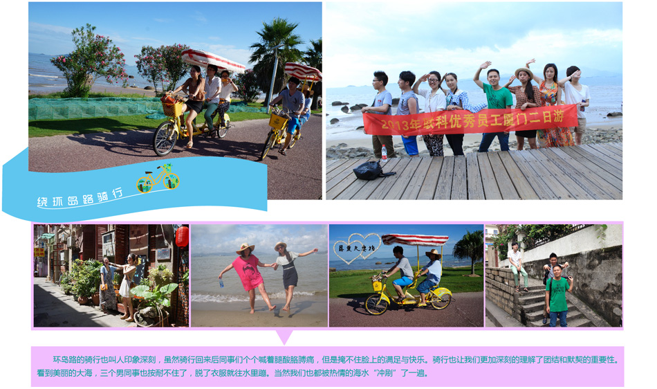在本次活動中,我們不僅深入體驗到廈門大眾休閑的旅游文化,而且得到了全身心的放松。"品廈門·享生活·創和諧",在今后的工作中,我們一定更加努力的創造輕松和諧的工作氛圍。 (文/陳麗琴 圖/全體工作人員)